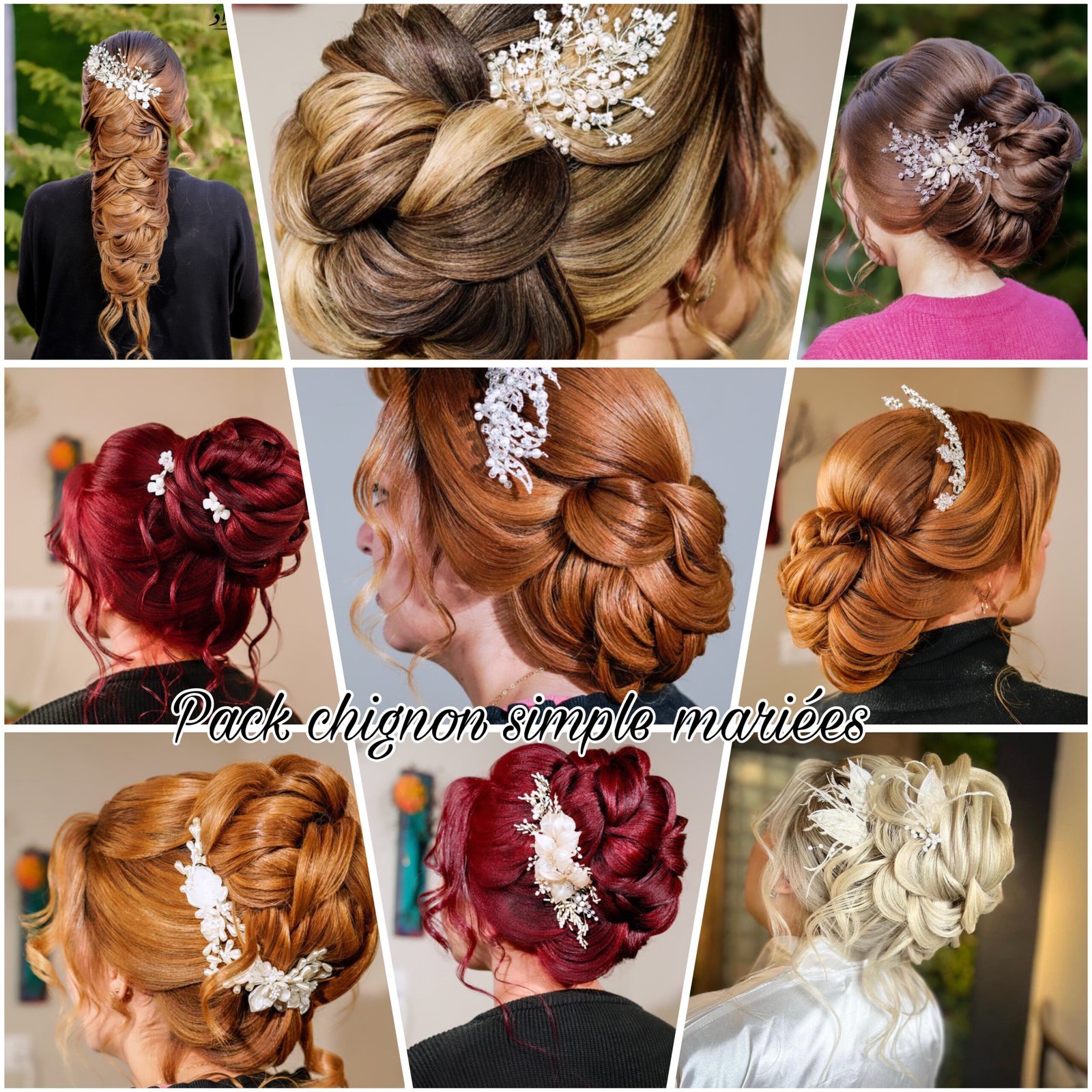 تتضمن هذه الأخيرة 8 فيديوهات لتسريحات مفصلة خطوة بخطوة تساعدك كل منها على إنجاز تسريحات شعر مثالية لعرائسك، و كعرض خاص منا لكم تأتي معها كهدية باقة الشينيون سامبل الخاصة بالمدعويين التي تتتضمن 5 تسريحات إضافية مجانا 💵 و لإكمال تجربتك التعليمية قمنا بإضافة فيديوهين 2 مكميلين للدورة، فيديو خاص عن الأدوات اللازمة المستعملة و فيديو خاص بتحضير الشعر